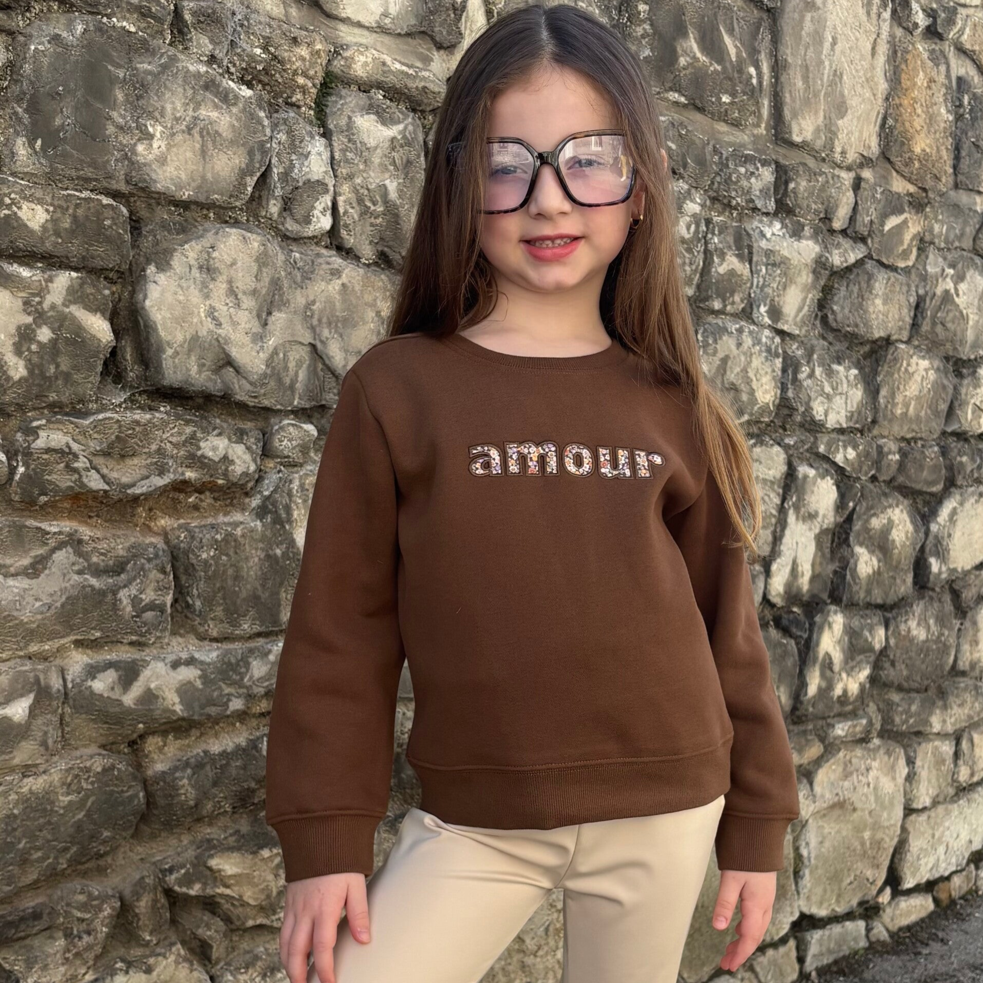 Sweat avec imprimé fleuri "Amour".